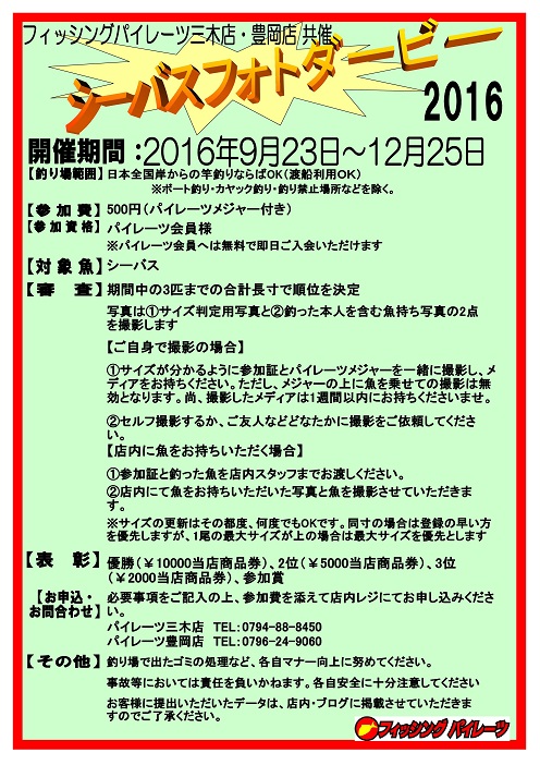 兵庫県豊岡市にある釣具店のフィッシングパイレーツ豊岡店です。イベント、釣果など更新していきますのでよろしくお願いします。