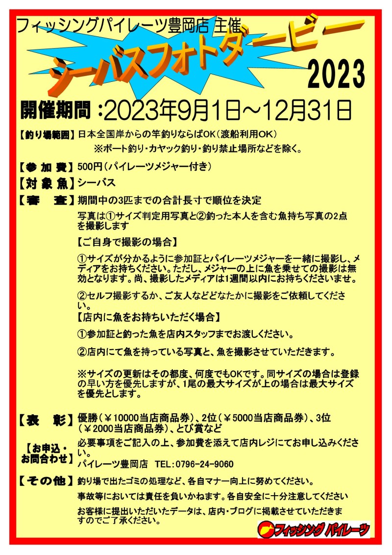 兵庫県豊岡市にある釣具店のフィッシングパイレーツ豊岡店です。イベント、釣果など更新していきますのでよろしくお願いします。
