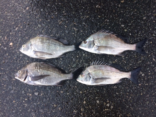 写真の4匹と15cmぐらいのチヌ1匹リリースで、合計チヌ5匹!